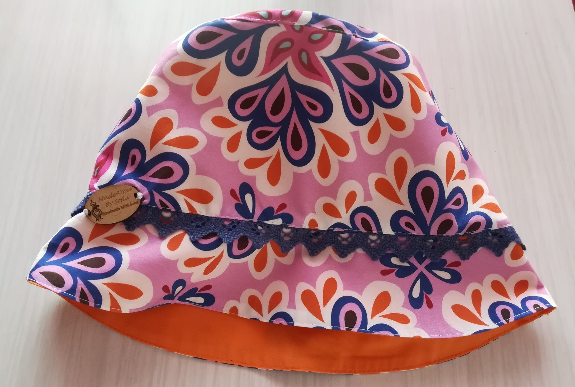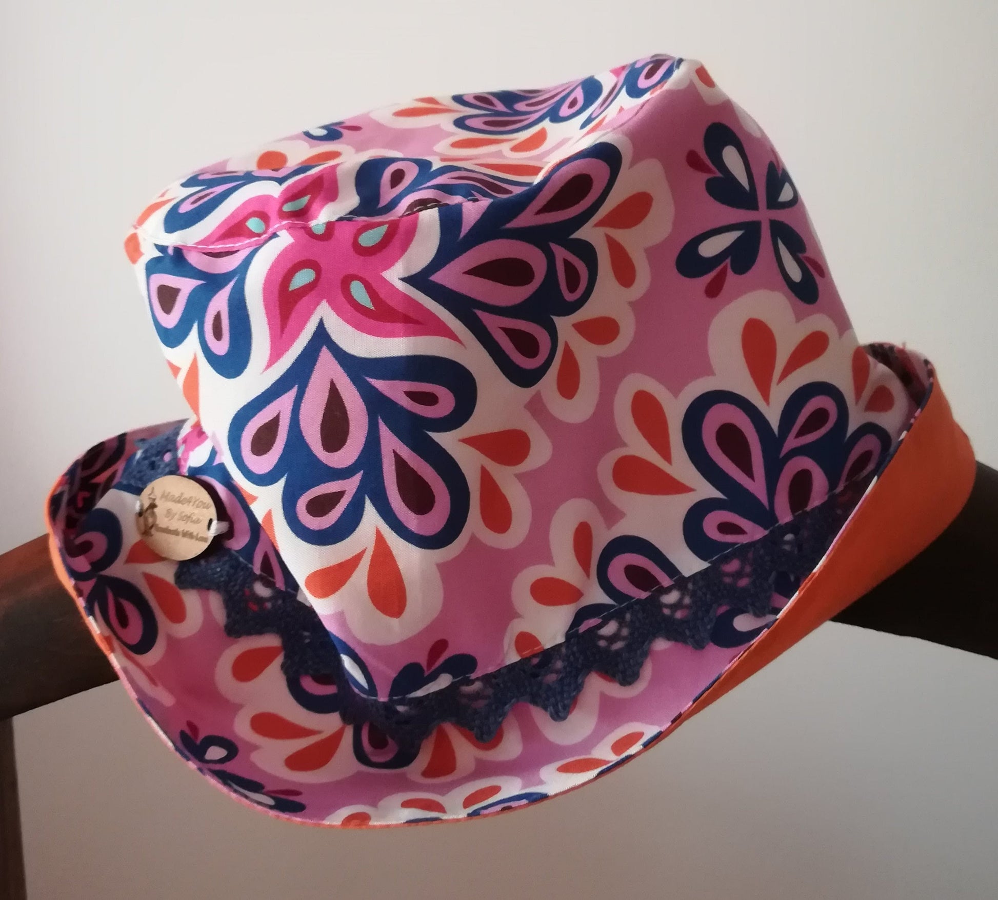 Leve, divertido e cheio de personalidade, o nosso panamá infantil "Alegria Floral" foi criado para proteger e encantar. Feito com tecido de alta qualidade, este chapéu exibe um padrão vibrante em tons de rosa, laranja, azul e branco, com um toque delicado de renda azul-marinho, que confere um charme único à peça.