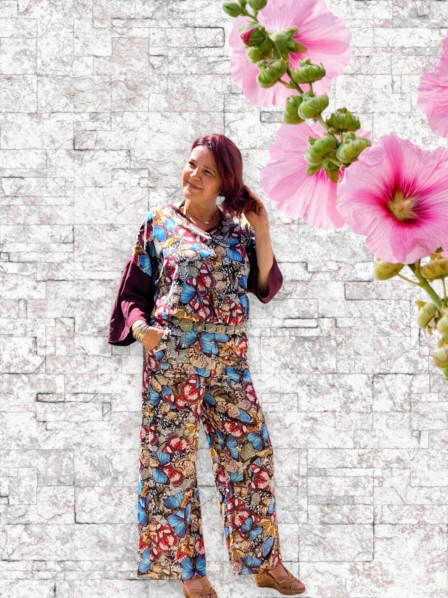 Macacão Artesanal Tamanho L com Estampa de Borboletas | Jumpsuit Boho Chic Feito à Mão | Roupa Única de Verão Festival Look