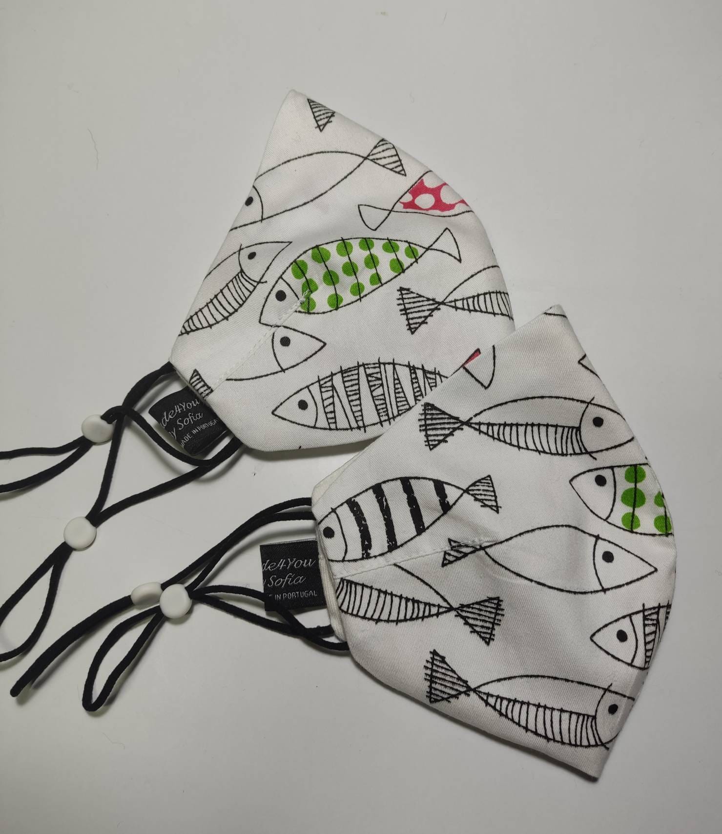 Máscara Modelo Sardinha, Washable mask, Reusable face mask, Cotton mask, Travel mask, Anti Dust mask, Stoffmaske, Fabric Facemask, Masks