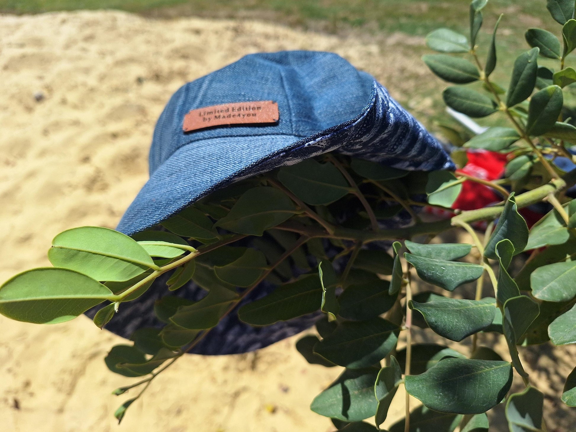 This reversible denim hat is carefully handmade from upcycled jeans, making each piece unique and eco-friendly.