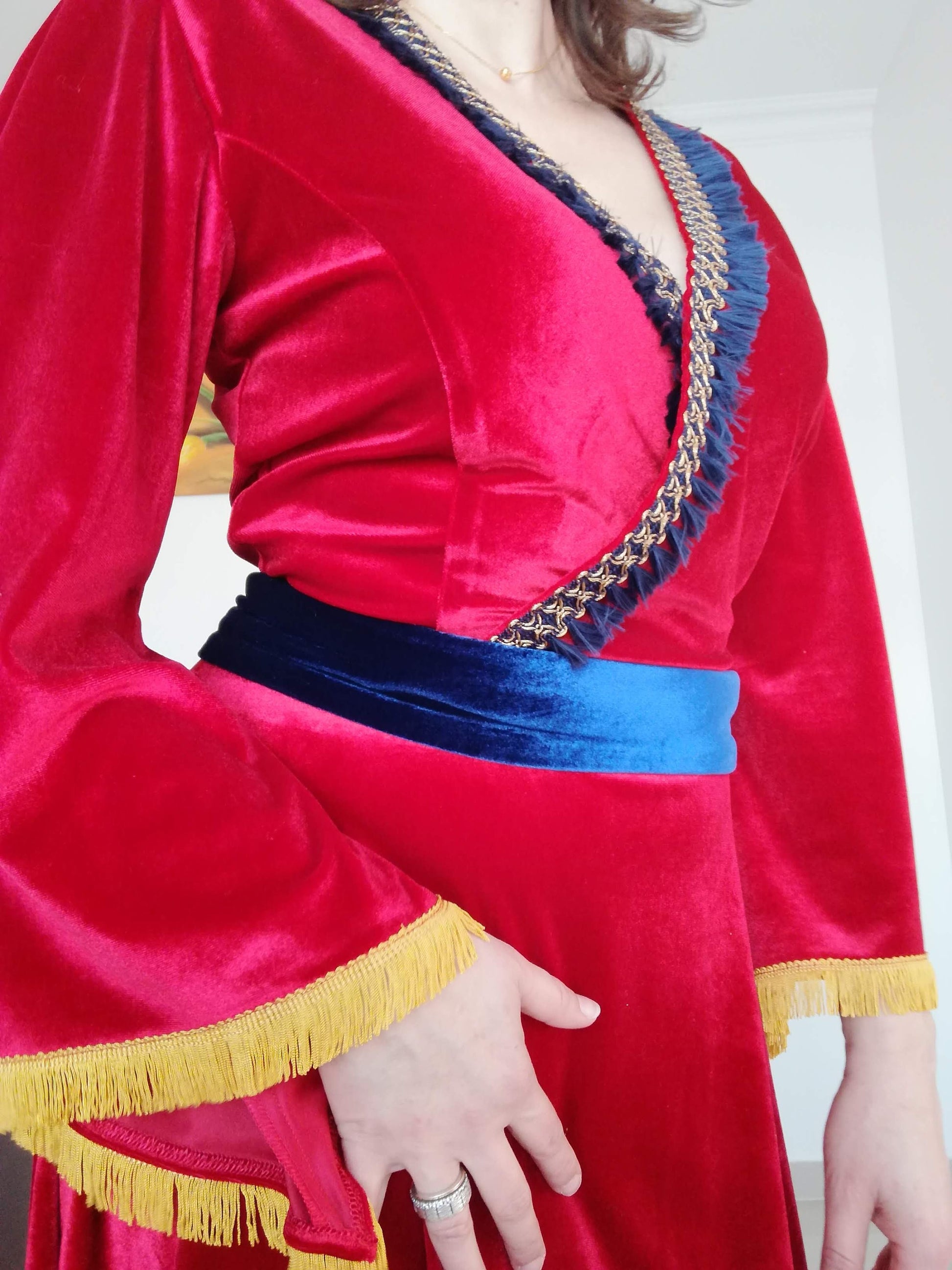 Vestido Medieval em veludo vermelho com faixa azul tamanho M